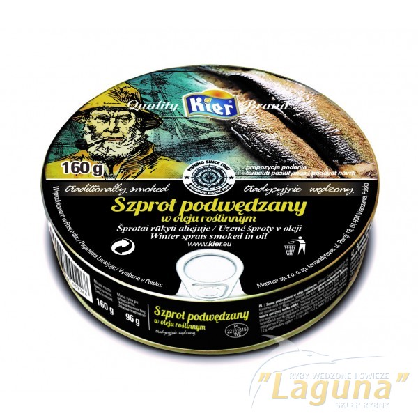 Masa netto: 160gMasa po odsączeniu: 96gSkładniki: Szprot bez głowy podwędzany (60%), olej rzepakowy, sól. Może zawierać gluten, seler, gorczycę, białka mleka.PRODUKT POLSKI